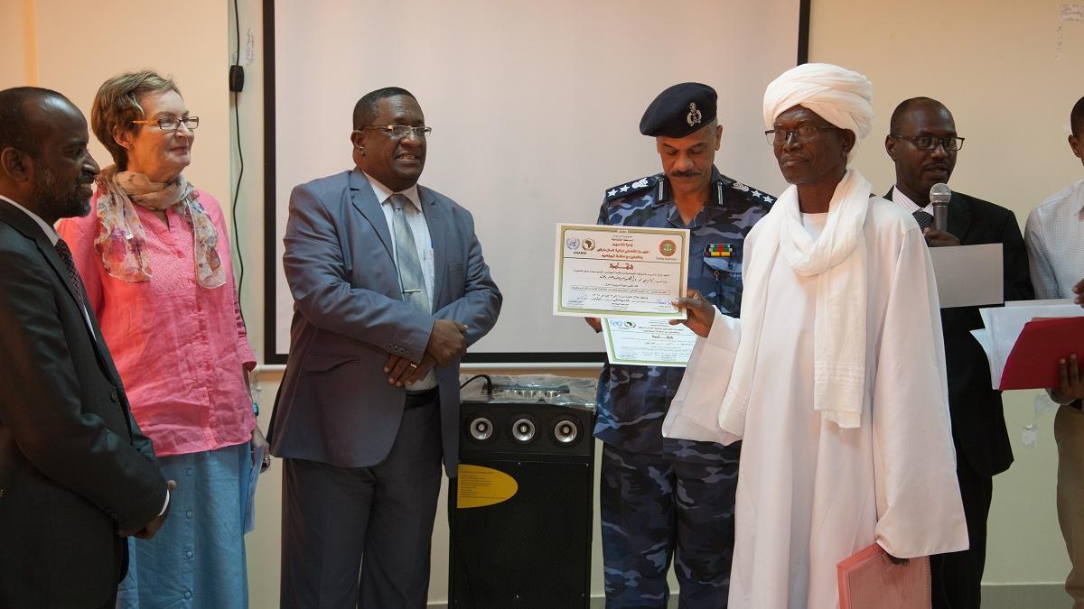 UNAMID Rule of Law recently organized training workshops for rural court judges in four Darfur states-- El Fasher, North Darfur; El Daein, East Darfur; Zalingei, Central Darfur; and El Geneina, West Darfur. Some 120 judges received training on Sudanese laws, legal procedures and techniques for conducting successful mediation of disputes. They were also given a copy of the Legal Hand book in Arabic published by UNAMID Rule of Law, in collaboration with Sudan judiciary.