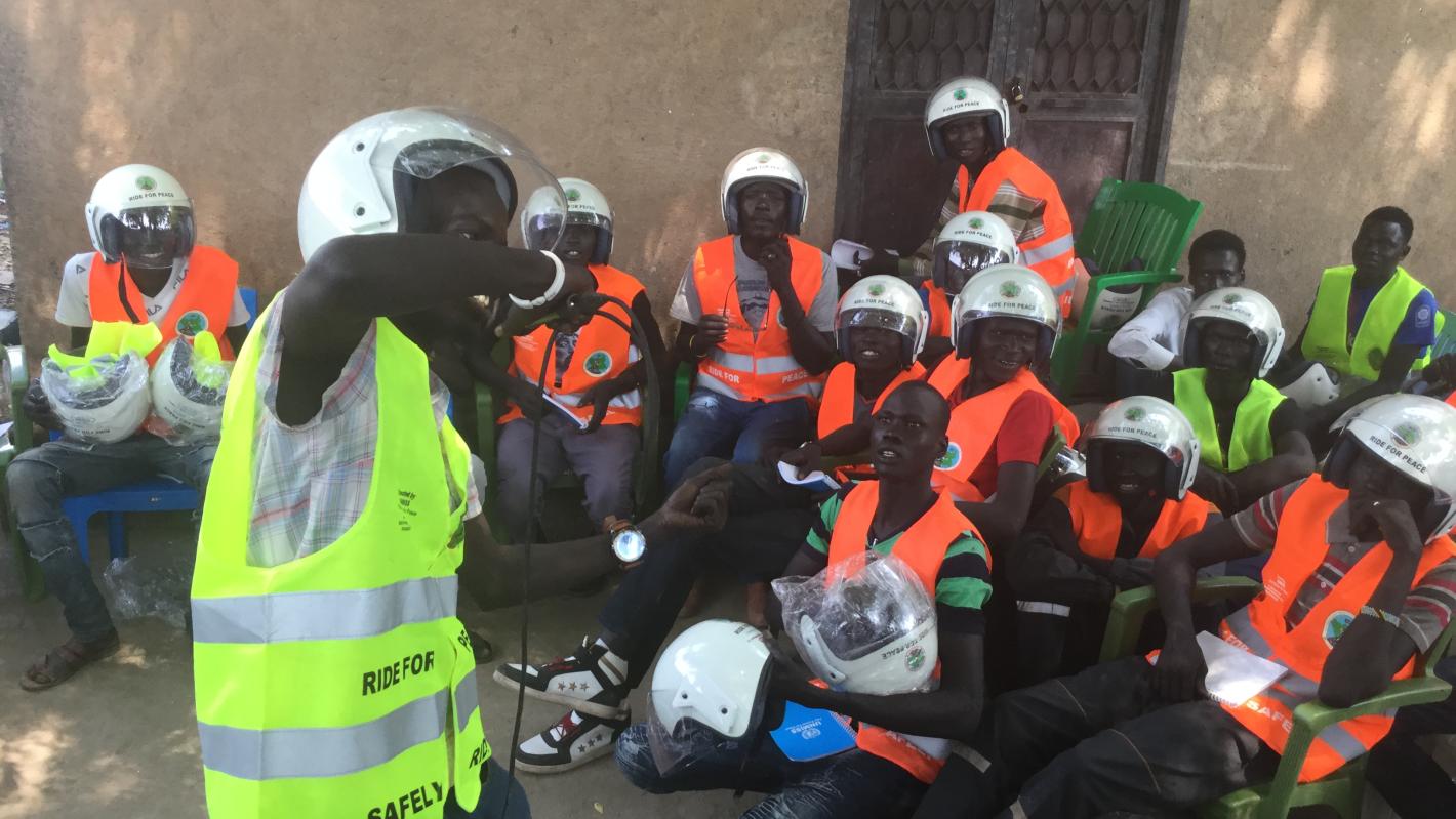 Boda-boda riders in Bentiu are embracing road safety and joining the growing wave of peace ambassadors in South Sudan. For the first time, the motorcycle taxi operators will be plying the streets and roads of Bentiu, wearing safety helmets and reflective vests.