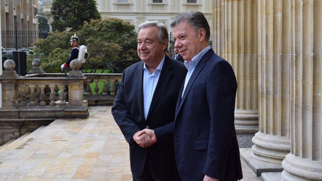 “We see more and more conflicts arising, and old conflicts with no solutions in sight; and that is why what happens in Colombia is of fundamental symbolic importance for the world,” Mr. Guterres told a press conference at Palacio de Nariño, Colombia's presidential palace, following a meeting with President Juan Manuel Santos.