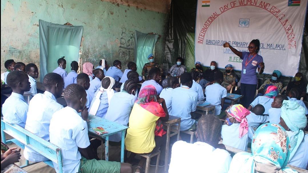They joined forces with other UNMISS personnel to sensitize 55 young students at the bandar Primary School, covering topics such as gender equality, roles and careers available for young girls in the fields of science, technology, engineering and mathematics.