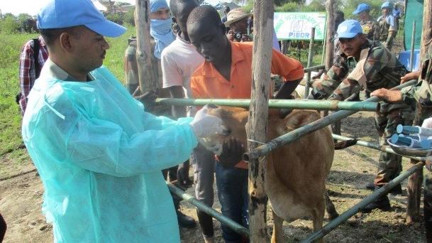 Indian peacekeeping veterinarians held a special camp to treat sick cattle and a training demonstration in support of farmers in the flood-stricken Pibor area as part of week-long United Nations Day celebrations.