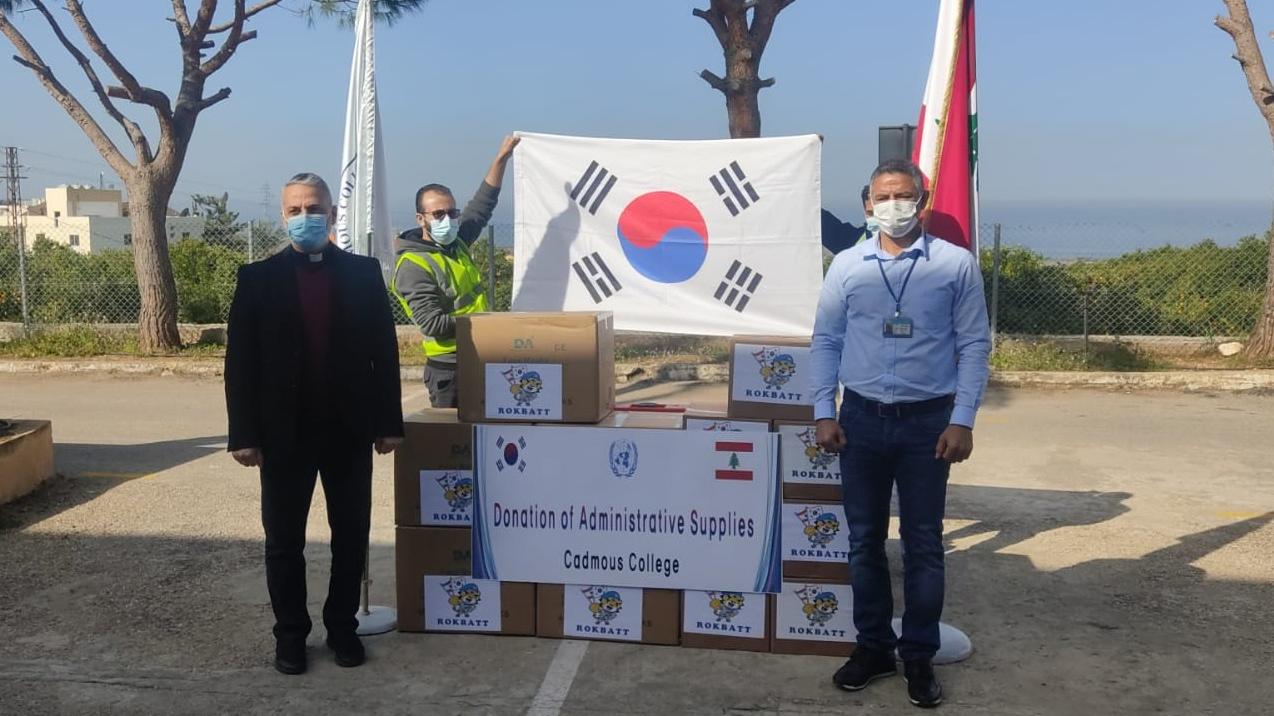The UNIFIL Korean Battalion (ROKBATT) also donated the city councils of Burghuliyah, Burj Rahal, Tayr Dibbah, Abbasiyah and Shabriha with IT and office equipment, furniture, stationery and masks.