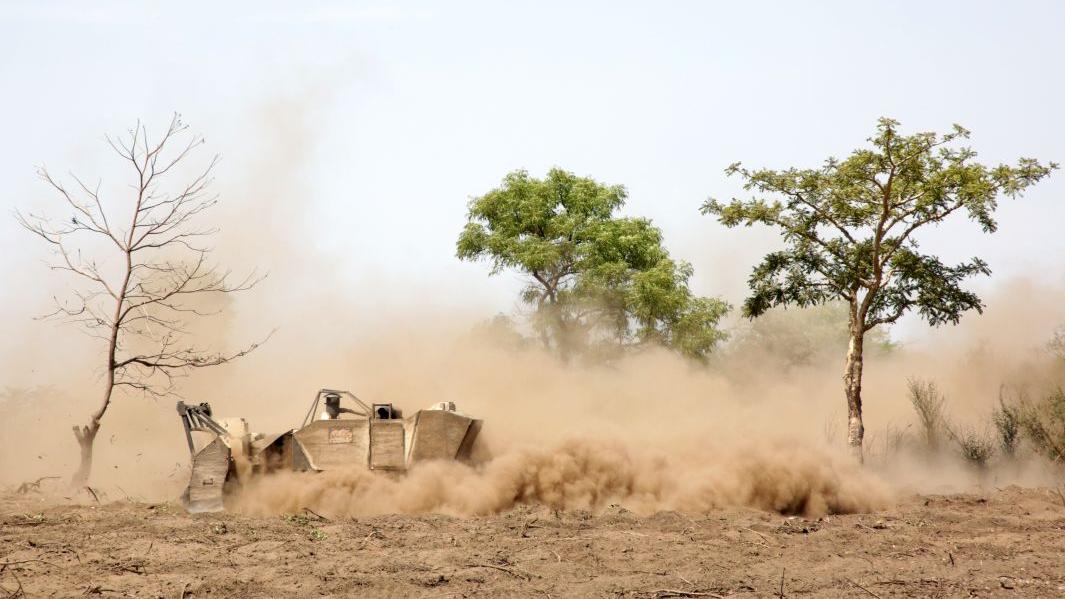 A mine action field site is a sight to behold – on those rare moments when you can actually discern anything through the dirt-brown clouds of dust kicked up by the MineWolf 240 rumbling through the sun-hardened ground of a field in Kudwo, some 25 km from Juba.