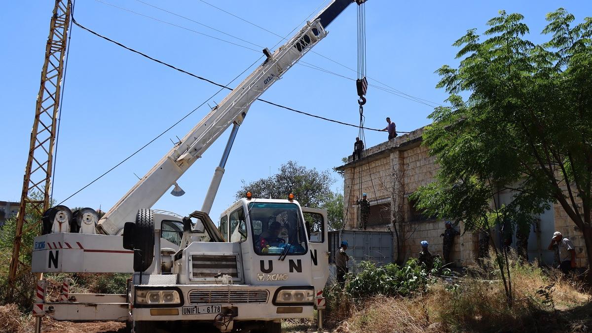 UNIFIL’s Nepalese Battalion responded without hesitation. Using their UN mobile crane NEPBATT transported a generator from another part of town to the location of the well. On the ground, two Lebanese Armed Forces (LAF) soldiers joined NEPBATT’s Engineers team, CIMIC officers and members of the community to position the generator and connect it to the well pump.