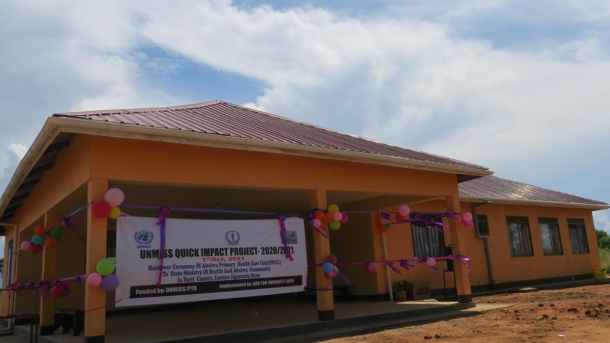 UNMISS recently handed over a seven-room primary healthcare unit with antenatal facilities, a pharmacy and delivery beds for expectant mothers to communities in Labalwa, Eastern Equatoria. Prior to this, residents had to trek for 9 kilometers to Torit to access basic health and medical services. The handover falls under the mission's Quick Impact Projects programme. Photo by Okello James/UNMISS