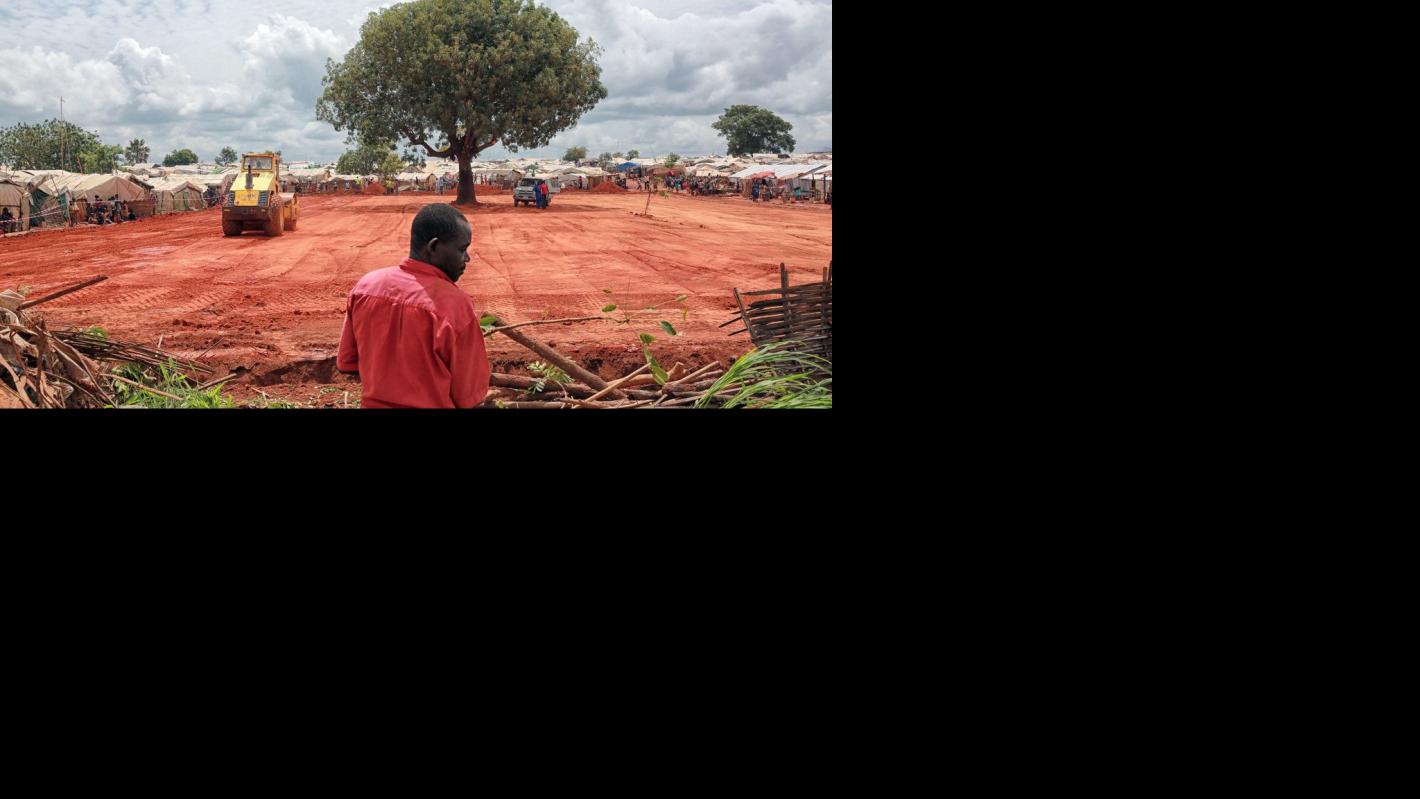 The process involves moving groups of 1500 internally displaced people at a time to a new area while their shelters are dismantled, the land is levelled, and new drainage and shelters are built.