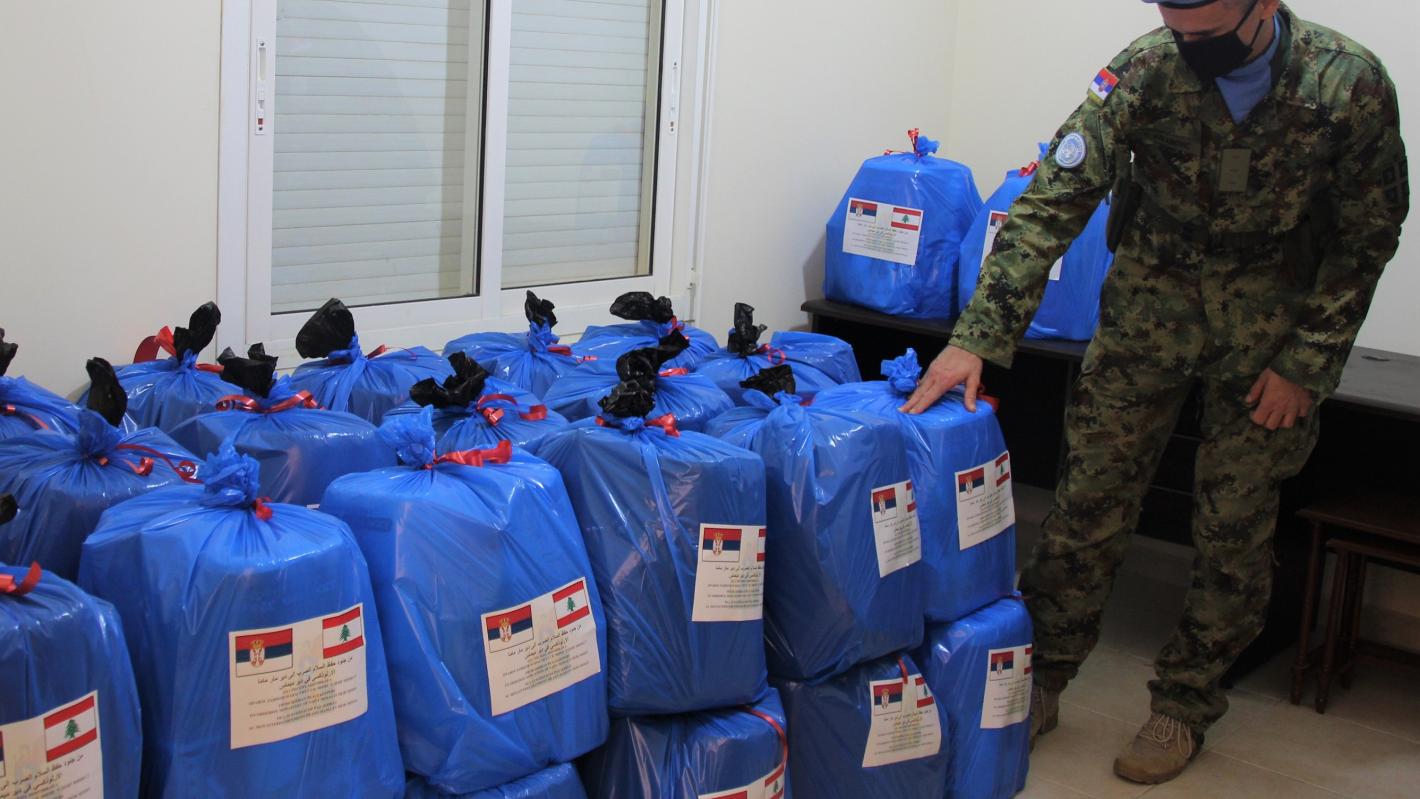As part of UNIFIL’s ongoing support to host communities in their fight against the COVID-19 Coronavirus pandemic, the Mission’s peacekeepers from Serbia donated last week packages of sanitary and hygiene supplies to 100 underprivileged families in the village of Deir Mimas, south-eastern Lebanon.