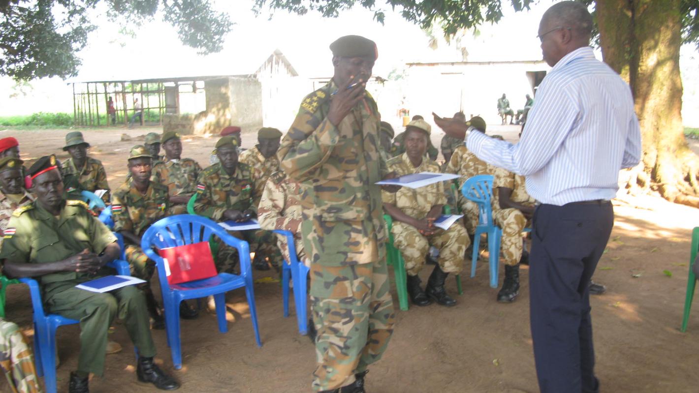 Senior army officers in Yei, learning about the human costs of war, the rights and suffering of victims of sexual violence.