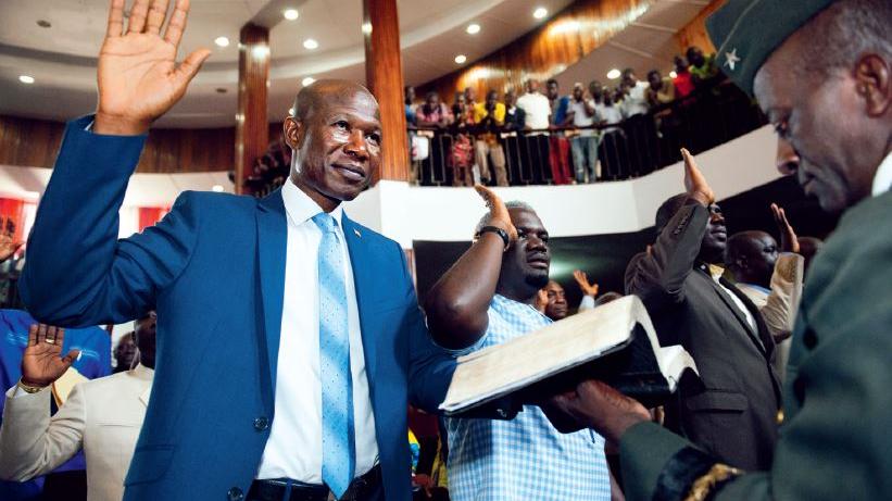 Bhofal Chambers, newly elected Speaker of the House of Representatives of Liberia is sworn in at the first session of the 54th Legislature in Monrovia. Photo: Albert G. Farran | UNMIL | 16 Jan 18
