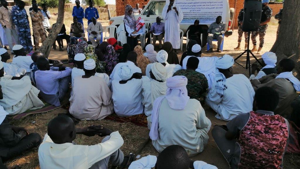Zalingei-11 November; UNAMID’s Governance and Community Stabilization (GCSS) in collaboration with the Native Administration (NA), Peaceful Coexistence Committee (PCC) and local authorities conducted a two separate dialogue forums in Khartoum Jadid and Korgul return villages to prevent tension between farmers and herders during the current harvest season and to promote dialogue between the two communities in the targeted areas.