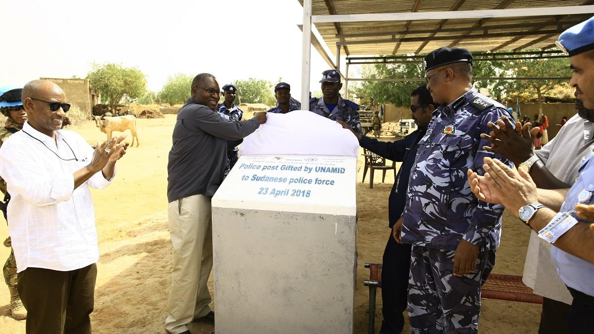 On 23 April 2018, UNAMID handed over a police post at Al Riyadh camp for Internally Displaced Persons (IDPs) in El Geneina, West Darfur, to Government of Sudan police forces. The project is part of the Mission’s efforts to strengthen rule of law and enhance security in the area. The police post is expected to help to boost the Sudanese police capacity to prevent and respond to incidents within the location.
