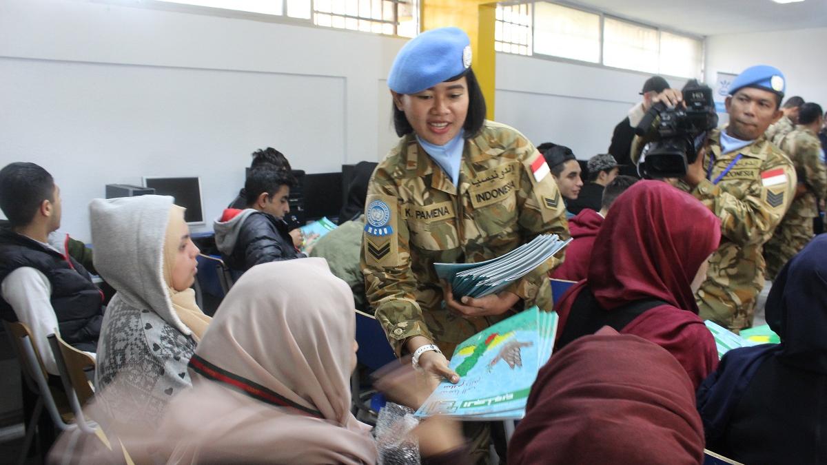 Peacekeepers from UNIFIL’s Military Community Outreach Unit (MCOU) and Civil Affairs offered the educational session for 40 young students at Al Afak Technical School on 19 December.