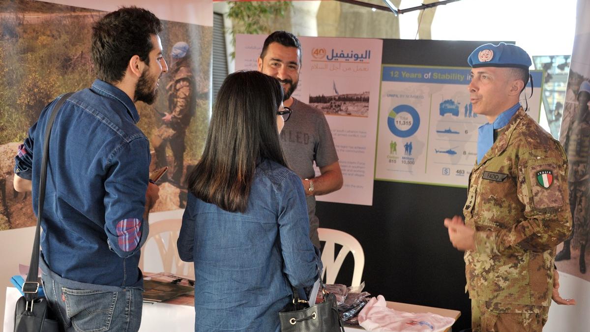 UNIFIL’s military and civilian peacekeepers joined various UN agencies in Lebanon in an NGO fair in Beirut earlier this week to speak with Lebanese youth about the work of UN Peacekeeping in south Lebanon in furthering peace.