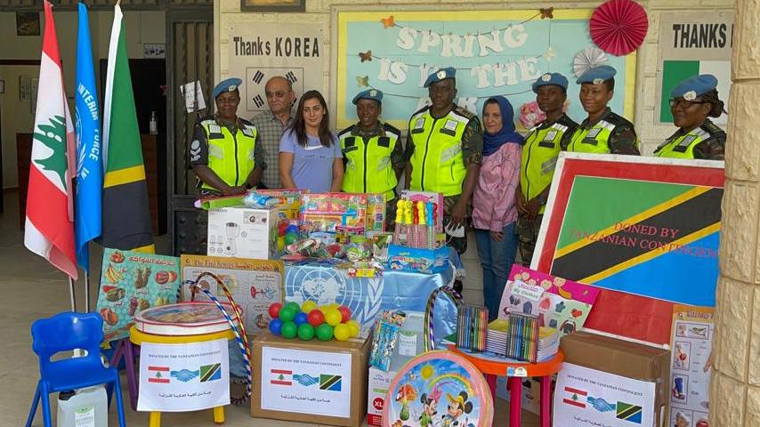 UNIFIL peacekeepers from Tanzania donated stationary items like books, notebooks, colouring kits, chairs and sports equipment to Al-Hanan School for special needs in Abbasiyeh, south Lebanon.