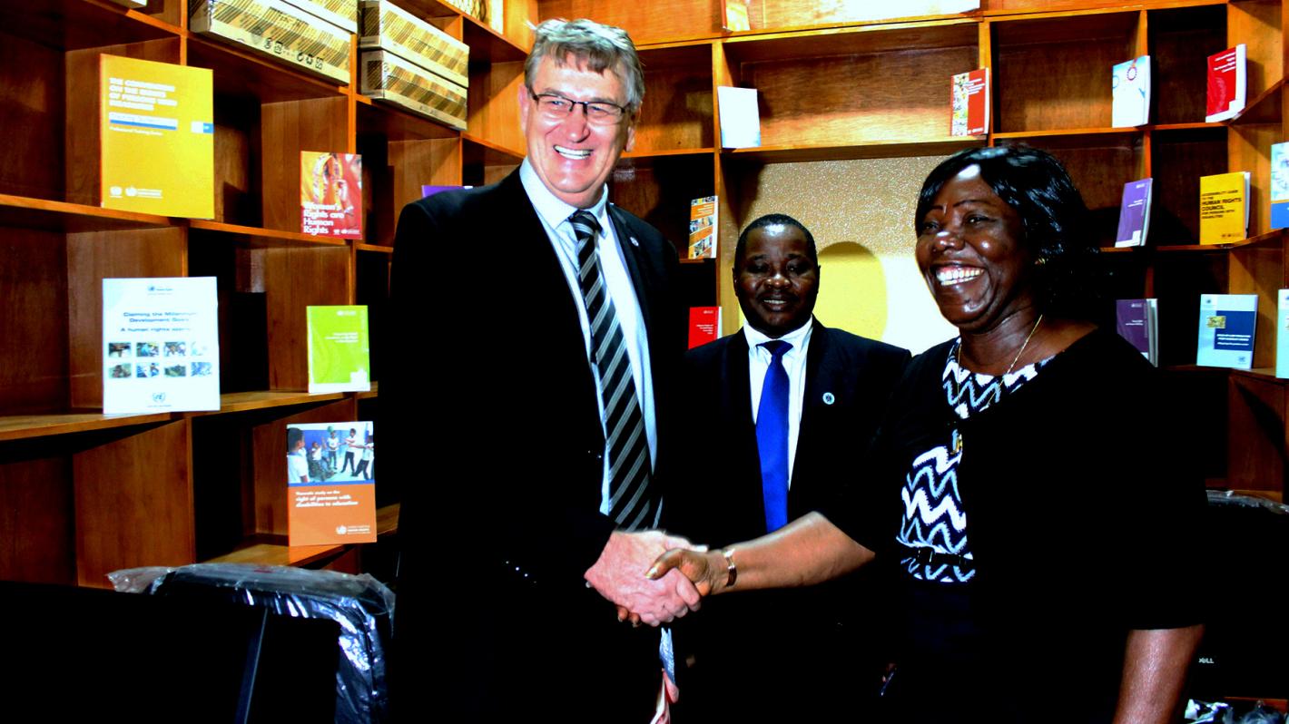 1 February 2018, Monrovia - UNMIL Deputy Special Representative of the Secretary-General (DSRSG) for Political and Rule of Law, Mr. Waldemar Vrey on behalf of the United Nations Mission in Liberia (UNMIL) ceremonially handed over the project to Cllr. Elizabeth J. Nelson, Court Administrator, which on behalf of the Chief Honour Justice, assured that all support received will be utilized for the intended purposes.