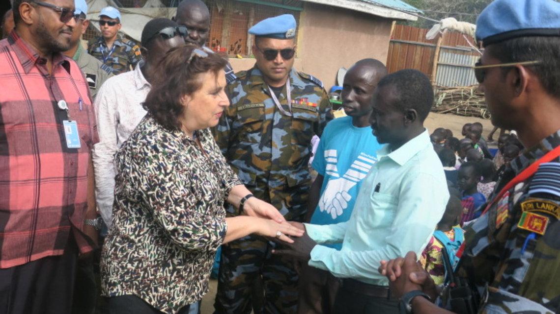 UNMISS Head of Field Office Deborah Schein hands over generator keys to acting director of orphanage