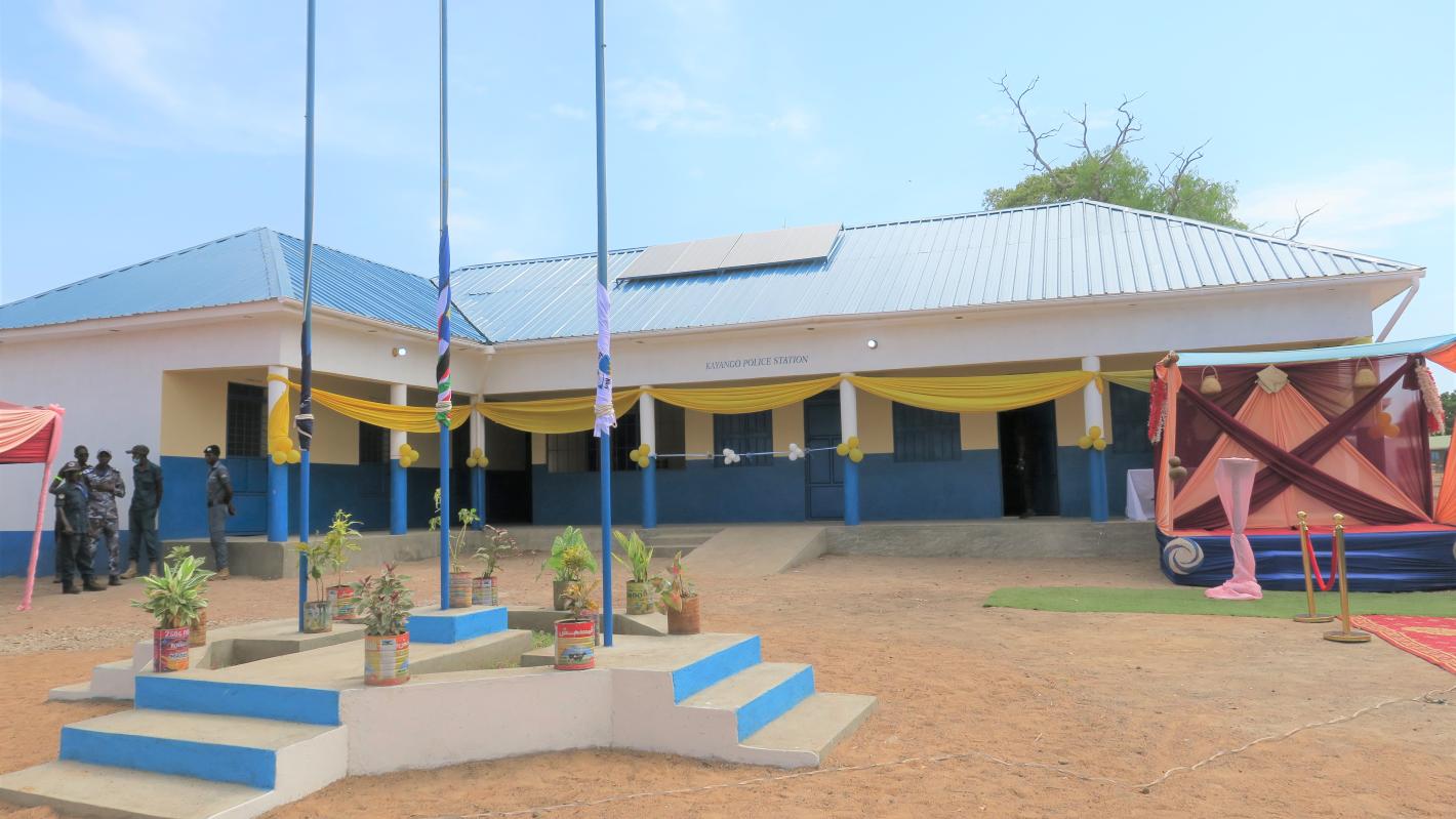 WESTERN BAHR EL GHAZAL - Kayango, a locality in Western Bahr El Ghazal’s Jur River county, lies at the center of four corridors where seasonal cattle migration is most intense.Despite the 2016 Marial Bai Agreement which regulates disputes resulting from annual movement of cattle, which has greatly contributed to more peaceful migratory patterns, the influx of nomadic herders from neighbouring Warrap state is never void of clashes with settled communities and, a corresponding rise in crime.As part of ongoing efforts to strengthen security and rule of law along this corridor, the United Nations Mission in South Sudan (UNMISS) therefore handed over a newly constructed police post to Western Bahr El Ghazal state authorities in this strategic location.It was a moment of jubilation for community members who showed up to the event en masse, as key state actors, led by the Deputy Governor for Western Bahr El Ghazal, Zachariah Garang received the structure.“We need peace among our people because cattle keepers and farmers are equally important for our livelihood,” said Deputy Governor Garang, addressing those gathered. “We appreciate UNMISS for the strategic location of this police station. From here, our law enforcement officers can easily reach neighbouring villages when there are issues,” he added.Funded through the Mission’s Quick Impact Projects (QIPs) programme, the new, solar-powered police post boasts of four detention cells, including separate sections for women, men and juvenile offenders; ablution facilities as well as four fully equipped offices, one of which is reserved for a prosecutor.Kayango Police Station is already a symbol of security and proximity to justice for more than 16,000 residents of the area, some of whose vigorous singing and dancing during the hand over ceremony spoke volumes of their relief. The most assured of these community members however, seemed to be the traditional chief who, in the absence of justice and rule of law institutions had been the only provider of justice through the customary court.“With four detention cells in this police station, I want to tell perpetrators of crime that there is no longer any possibility for escape by criminals,” Pater Akuar, chief of Kayango, informed the crowd. “Thank you UNMISS,” he added and committed to a cordial working relationship between the traditional justice system and police officers.For local police, this is a boost to their daily occupation.“A police station remains an institution for law enforcement,” averred Major General James Simon, Deputy Police Commissioner for Western Bahr El Ghazal. “No one should take the law into their hands. We appeal to the community to report offenses to the police and our officers to do their job in accordance with the law,” he cautioned.It was a gratifying moment for all present, especially for the delegation from UNMISS led by Leopold Kuassi, Acting Head of the Field Office in Wau.“I want to assure Western Bahr El Ghazal state authorities of UNMISS’ continued support in their efforts to restore peace and stability to communities affected by conflict,” he stated.“Our UN Police will enhance the capacity of their counterparts deployed in Kayongo as they conduct their regular confidence-building patrols in the area,” Kouassi assured.Kayango police station is one of three police stations that the UN Peacekeeping mission is helping fund in Jur River county.