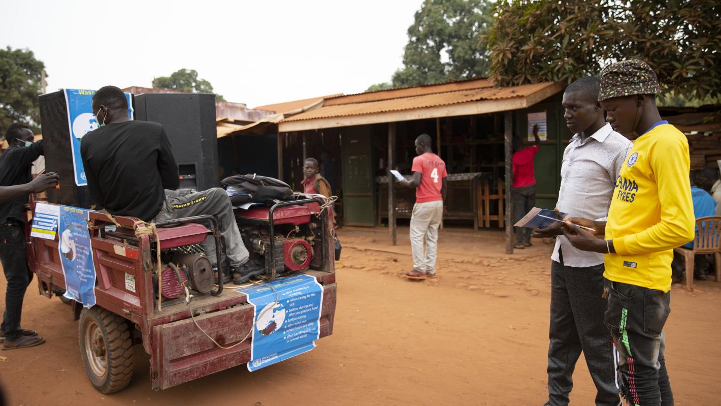 UNMISS starts five-day mobile awareness drive using a tricycle with mounted loudspeakers broadcasting key preventative measures approved by the World Health Organization (WHO) in Yambio and Anzara. These messages are, of course, being broadcast in local languages widely spoken here.