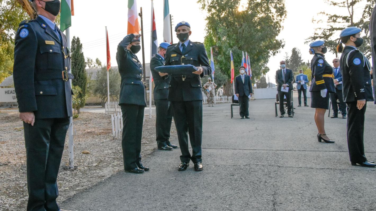 UNFICYP’s Force Commander Major General Ingrid Gjerde awarded medals to 17 UNPOL peacekeepers from Bosnia and Herzegovina, China, Finland, Ireland, Jordan, Slovakia and Sweden in recognition of their service for peace in Cyprus.