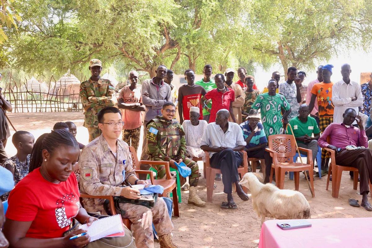 During a recent air patrol conducted by the UN Peacekeeping mission, UNMISS, to Ajakuac in Twic county, Warrap state, Blue Helmets interacted with community members who are reeling from climate shocks and conflict. Photo by…
