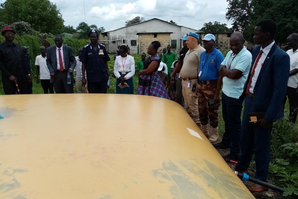 A "bladder" full of water safe to fill your bladder with has been handed over to the prison in Malakal, together with the necessary pipelines. Photos: Samuel Adwok/UNMISS UPPER NILE- Water is life, but if it’s not clean it…