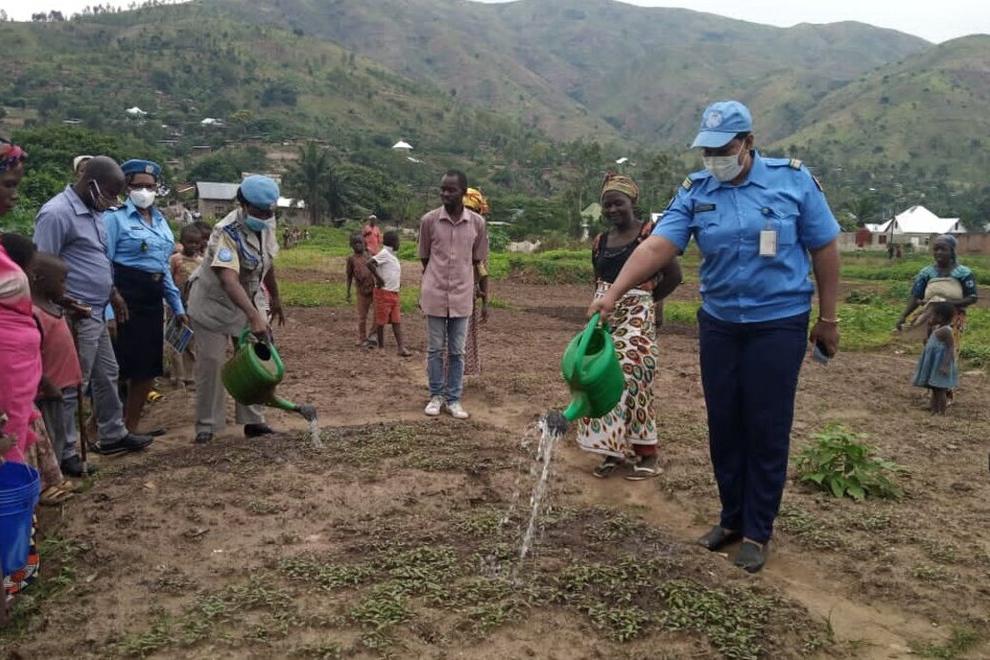 Female MONUSCO police officers, RFUM Uvira, interact with women farmers in Rugenge (northern outskirts of the city of Uvira) after a sensitization session on the protection of civilians and women's empowerment. Photo MONUSCO…
