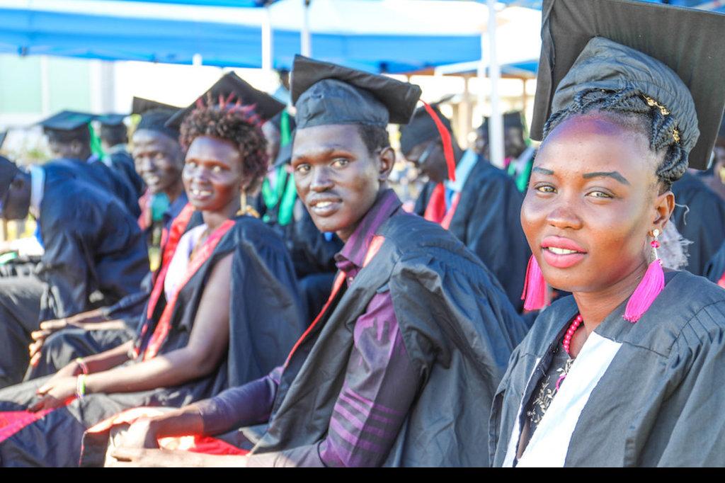 Happy graduates at the vocational training centre run by UNMISS peacekeepers in Bor. Last week, Jacob Mayom Malueth and 32 other young men and women graduated after six months of coursework at the vocational training centre…
