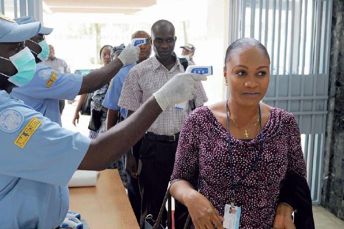 UNMIL Security guards checking the body temperature of UNMIL staff entering the UNMIL Headquarters. Photo: UNMIL During the Ebola crisis, four UNMIL staff members were infected, of whom two eventually succumbed to the disease…