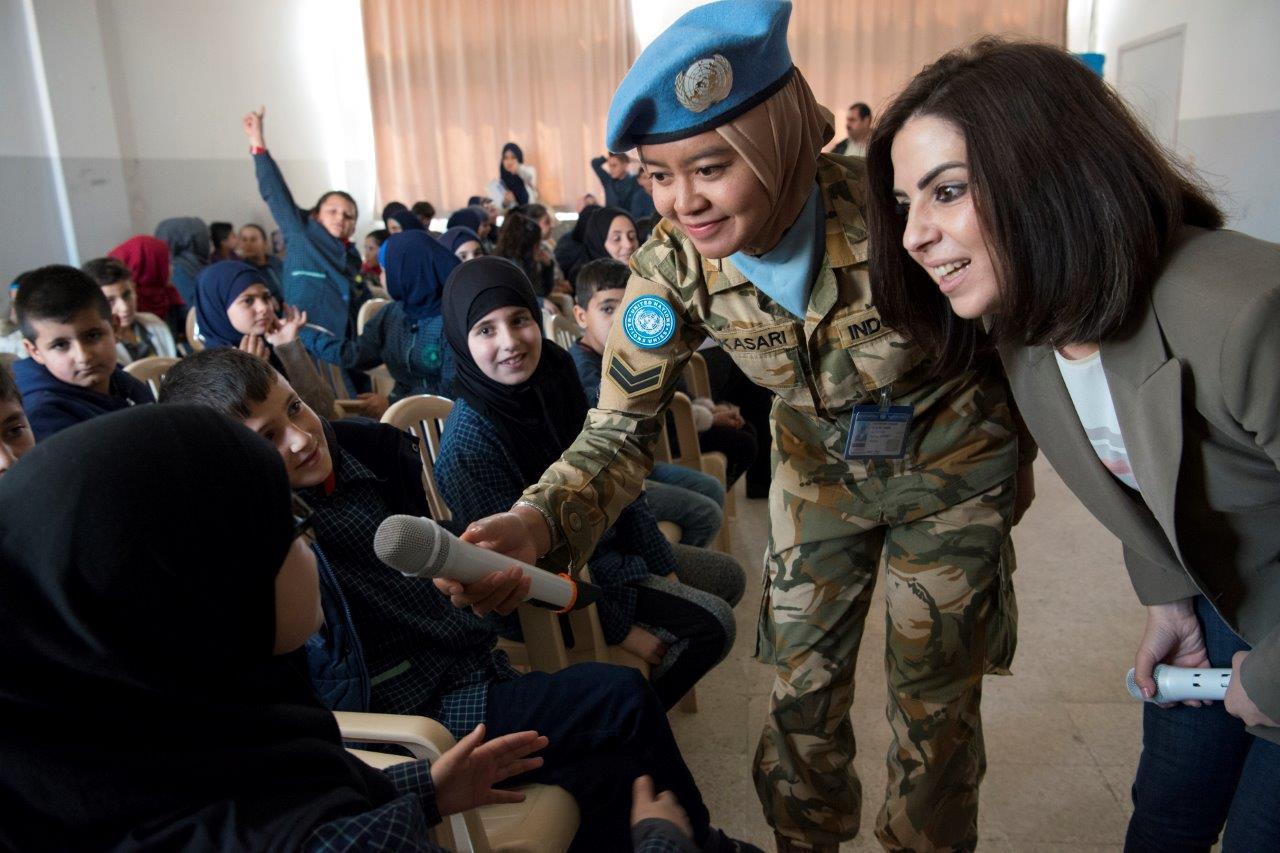 UNIFIL peacekeepers listen to a young student from Aytarun as she explains the dangers of approaching the Blue Line. 11 November 2017. With a greater push for gender mainstreaming in United Nations peacekeeping, over the past…