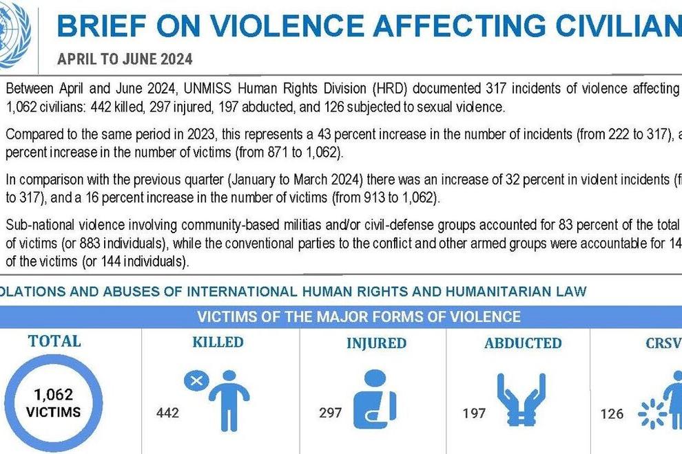 JUBA – Subnational violence remains a significant concern affecting civilians across South Sudan, as documented by the United Nations Mission in South Sudan (UNMISS) in its latest quarterly brief.Between April and June 2024…