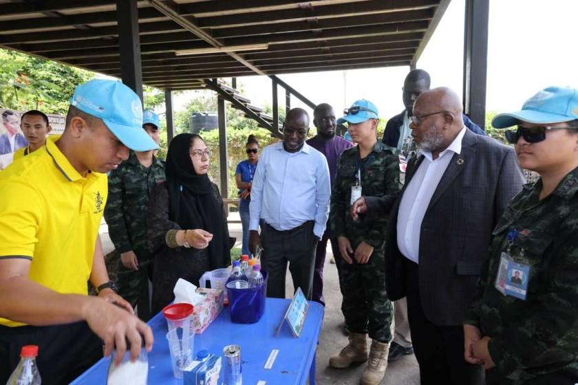 The UN General Assembly President meets UNMISS engineers combating the impact of climate change and Thai peacekeepers supporting agriculture initiatives for local communities. Photo by Nektarios Markogiannis/UNMISS. Right…