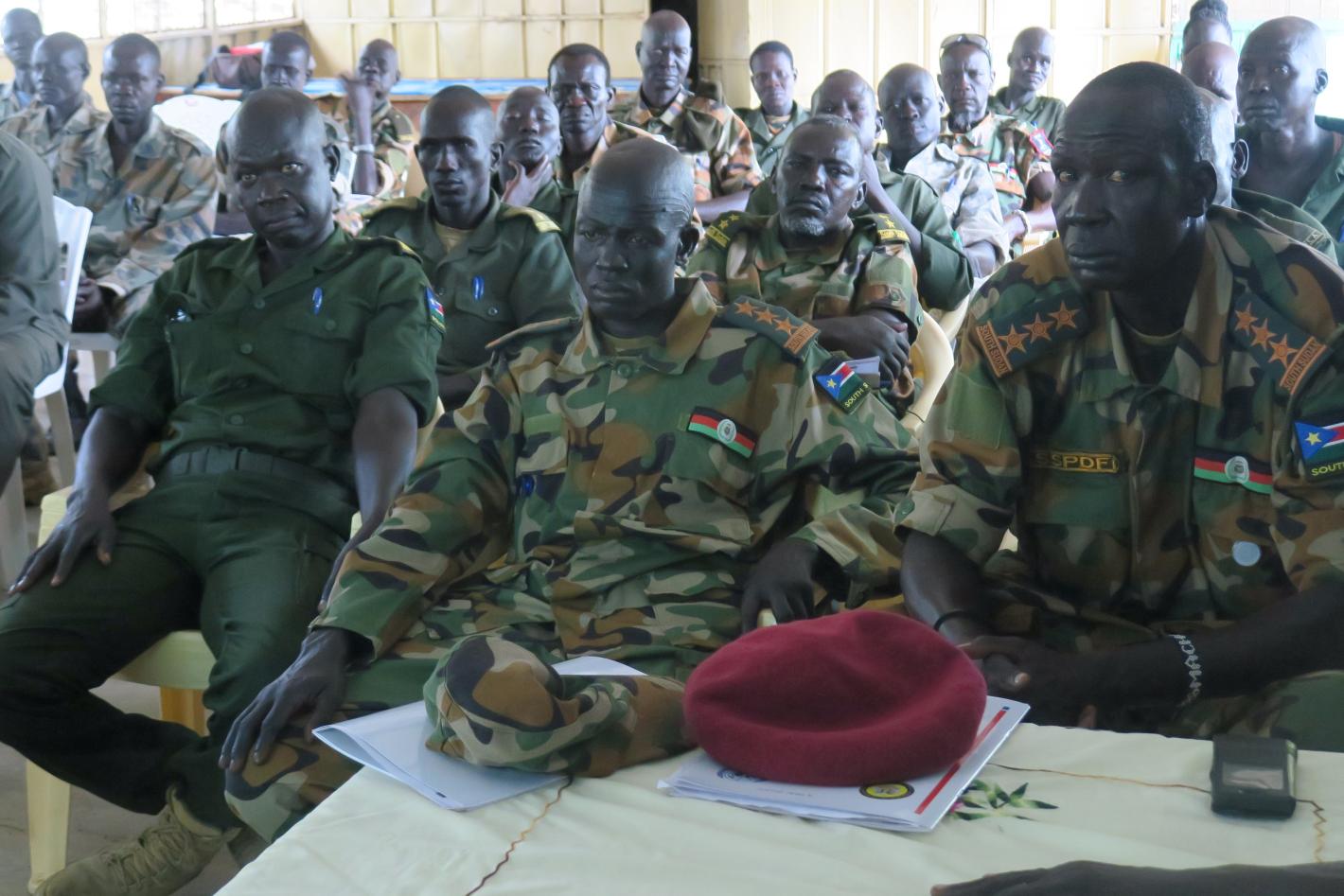 In a landmark engagement facilitated by UNMISS in Wau, South Sudanese uniformed personnel recommit to upholding human rights; enhancing rule of law; and ensuring all citizens can have access to justice. Photo by Roseline…