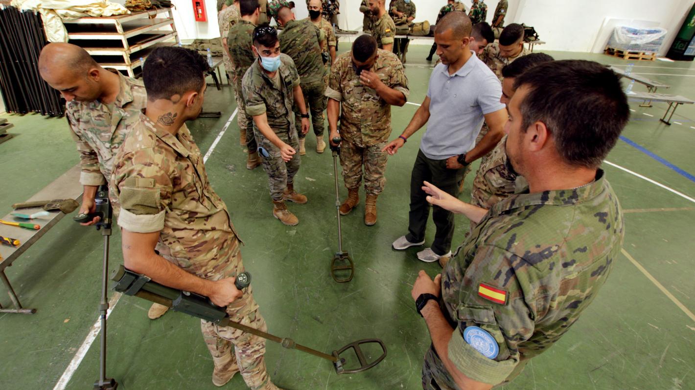 UNIFIL peacekeepers and LAF train together on detecting mines and explosives