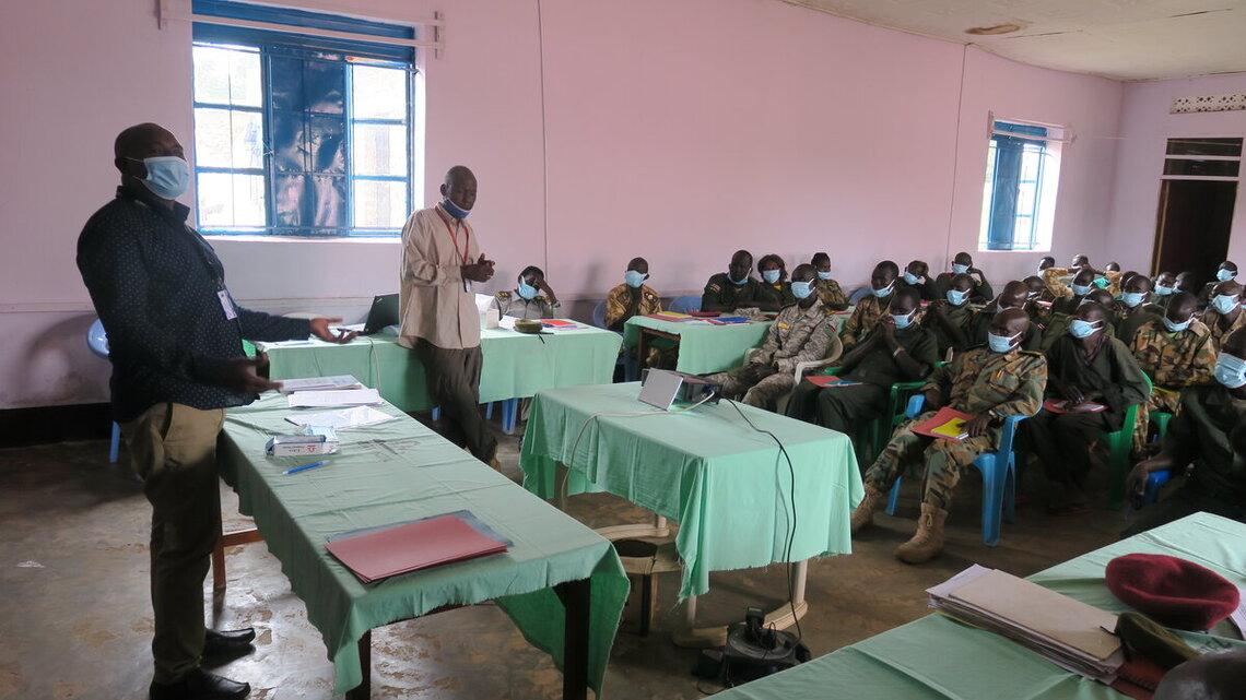 UNMISS recently facilitated a training for 50 South Sudanese uniformed personnel on human rights, international humanitarian law and building trust among civilian populations in Maridi, Western Equatoria. Photo by Martin Siba…