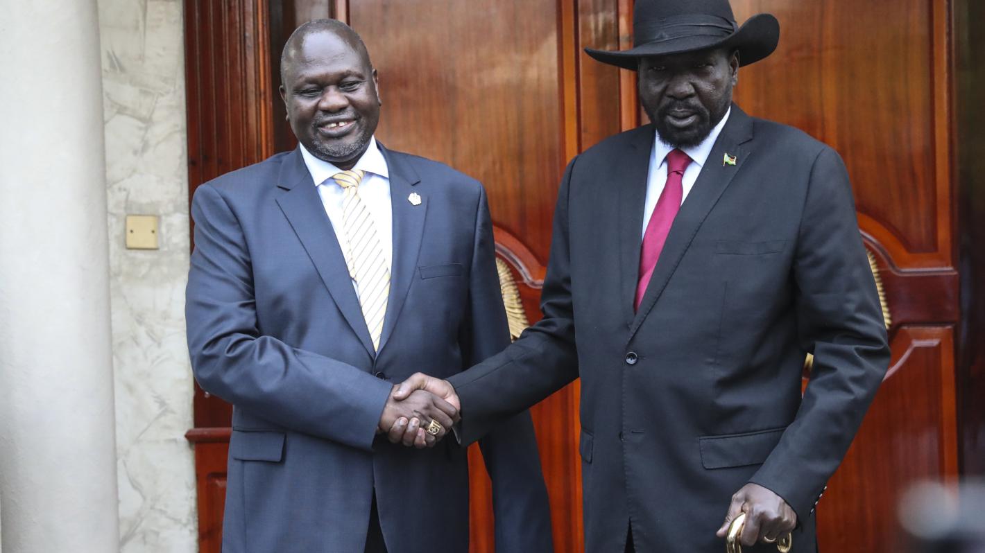 Opposition leader Riek Machar and President Salva Kiir shake hands in Juba for the first time since 31 October last year. South Sudan’s former vice president and opposition leader Riek Machar arrived in the country’s capital…