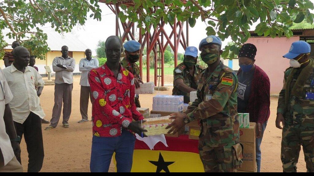 Ghanaian peacekeepers donate medicines for children to Akuem health facility in Aweil East County
