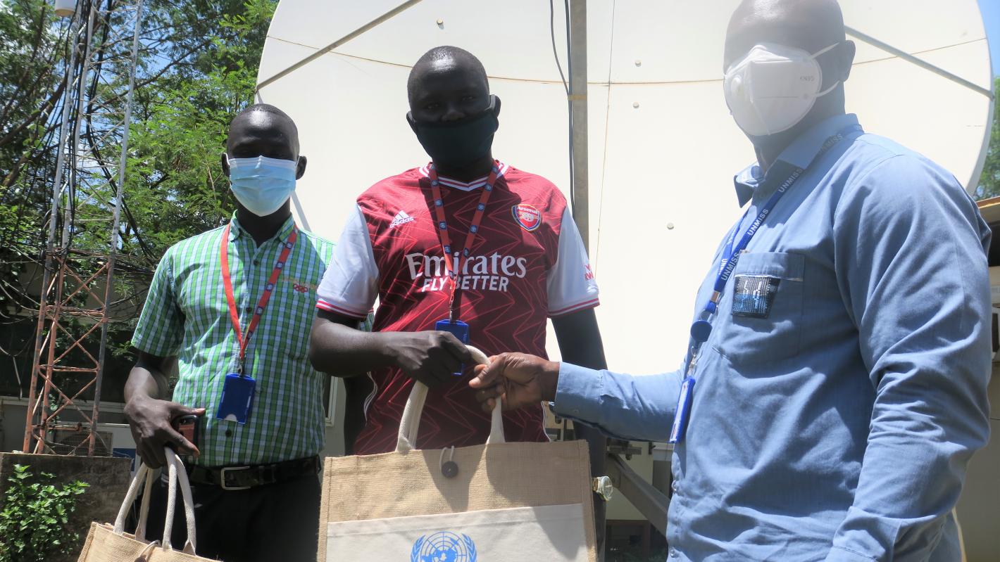 Young participants of a Radio Miraya spelling quiz received books, information material and promotional items depicting a peaceful, prosperous future for South Sudan. Photo by Moses Pasi/UNMISS. “By participating in the Radio…