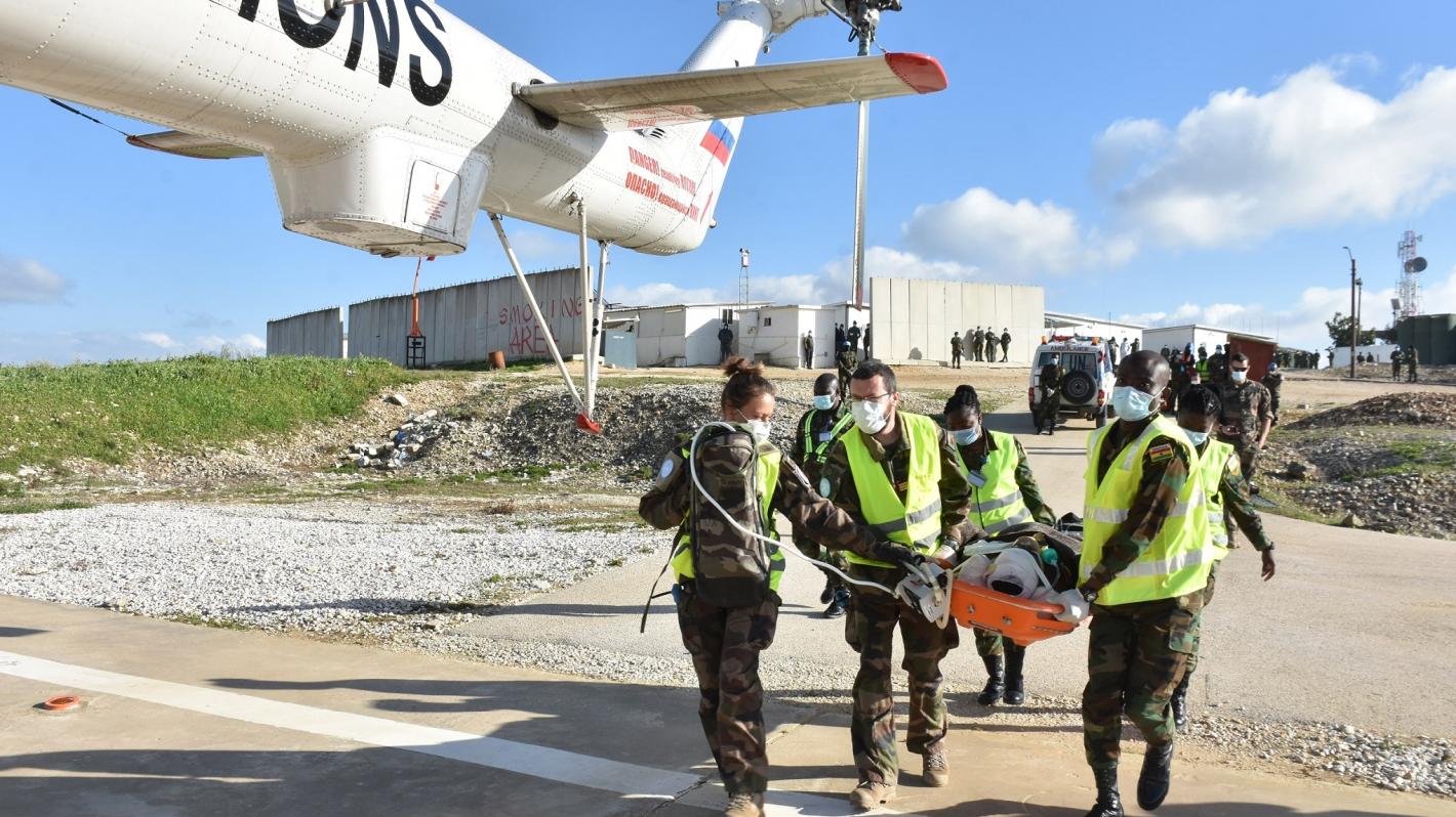 (UN Photo / Sgt. Nartey Benard) UNIFIL peacekeepers from France and Ghana conducted last week a joint exercise to hone skills and procedures for the safe evacuation of a medical casualty in the main Ghanaian base in the…