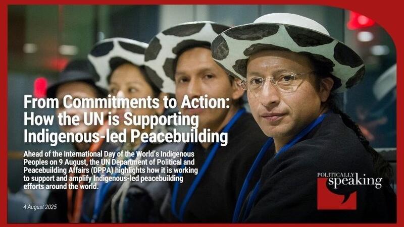 From land disputes in Guatemala to youth leadership in Colombia, Indigenous Peoples are leading efforts to resolve conflict and build sustainable peace in their communities. At a time of rising inequality and growing demand for natural resources, Indigenous rights and leadership is becoming ever more central to preventing conflict and restoring trust in fragile settings. Ahead of the International Day of the World’s Indigenous Peoples on 9 August, the UN Department of Political and Peacebuilding Affairs (DPPA) highlights how, together with its partners, it is working to support and amplify Indigenous-led peacebuilding efforts around the world.
