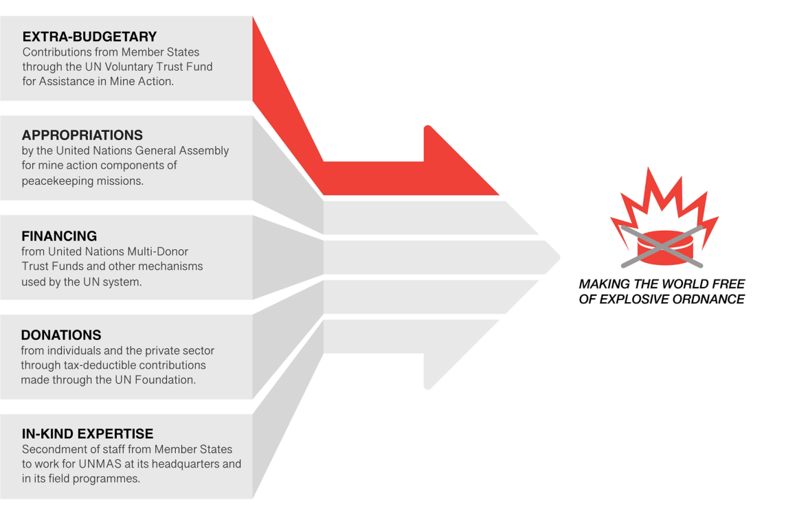 UNMAS also receives financing from pooled funding mechanisms used by the United Nations system, including country-based ones, emergency relief funds, and Multi-Donor Trust Funds. In addition, individuals and the private sector support UNMAS work through tax-deductible contributions made through the UN Foundation.