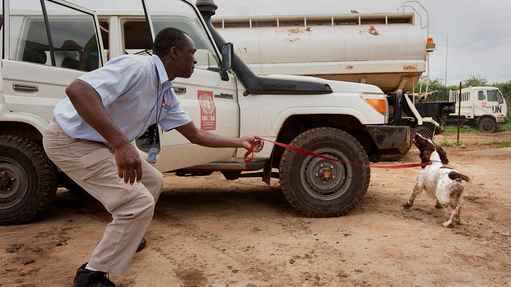 Currently, UNMAS has six explosive detection dog teams that focus on entry point control and cargo searches in Juba. In 2015, 19,781 vehicles, 13,587 bags and 970 buildings were searched using these teams.