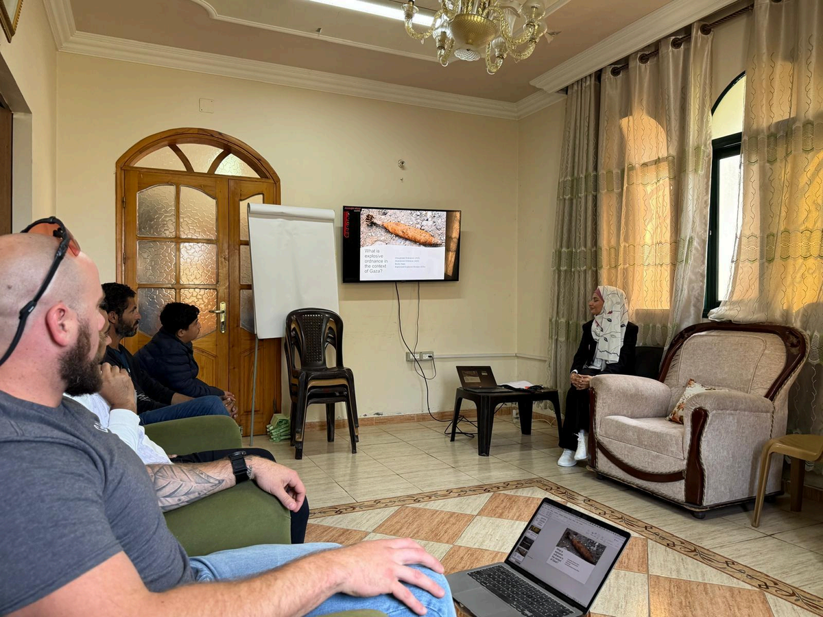 In Gaza, UNMAS has supported humanitarian partners throughout hostilities and during ceasefire periods, enabling humanitarian response by providing assessments and guidance relating to explosive ordnance threats. Particularly in ceasefire periods, UNMAS supports early recovery efforts, recognising that humanitarian mine action is an essential prerequisite for all recovery and reconstruction efforts, including debris management and rubble removal. Working with local and international partners, UNMAS also disseminates explosive ordnance risk education (EORE) messaging to civilians, to ensure people know how to adopt safe behaviours. In the West Bank, UNMAS supports EORE and capacity enhancement efforts with local non-governmental organizations and the Palestinian Authority (PA), including the Palestinian Mine Action Center (PMAC) and PA Explosive Ordnance Disposal (EOD) Police.