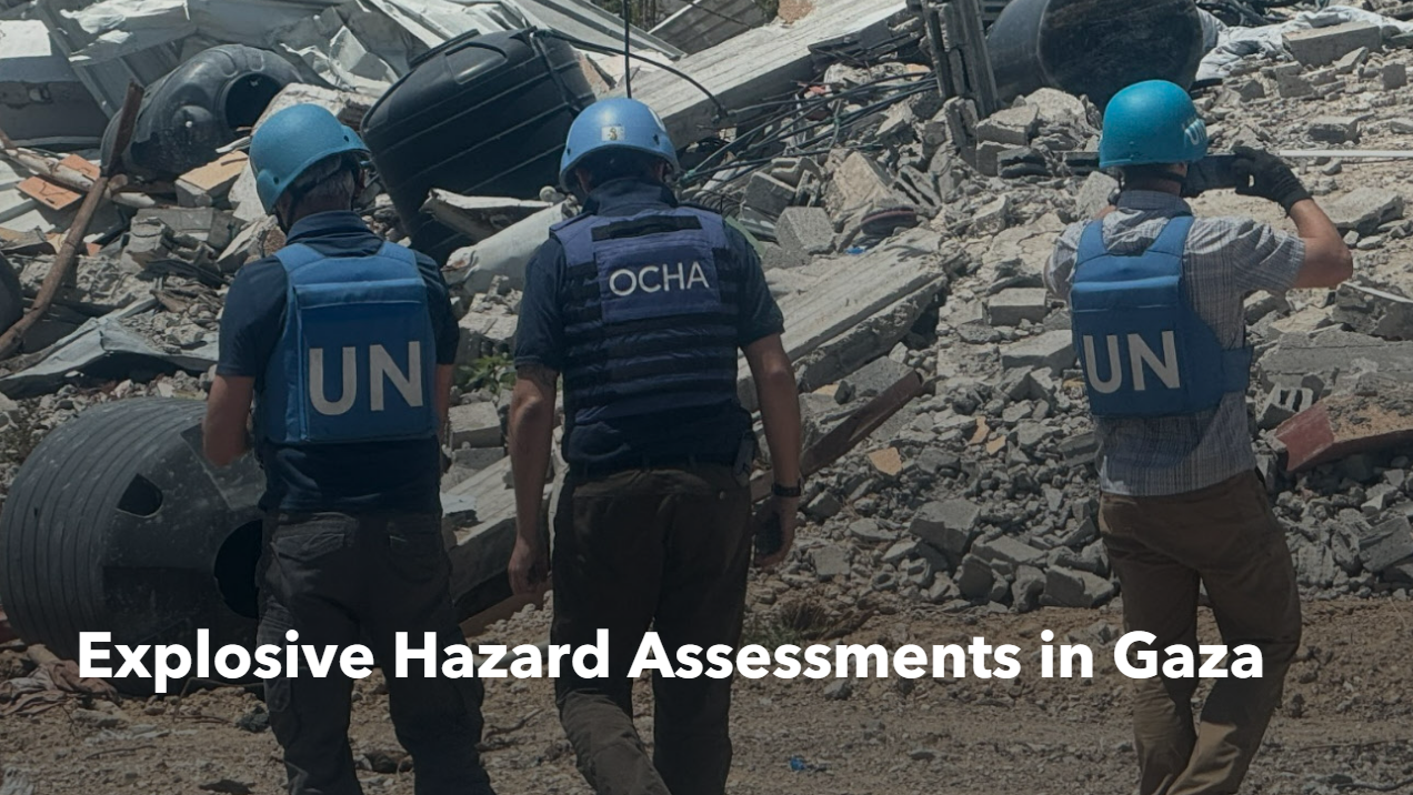The likely levels of contamination by explosive ordnance in Gaza put civilians and humanitarian personnel living and operating in the Strip at risk and limit the humanitarian community’s ability to provide aid to those who need it. In response to this threat, UNMAS conducts explosive hazard assessments - or EHAs - of sites that are used to provide humanitarian aid to conflict-affected communities.