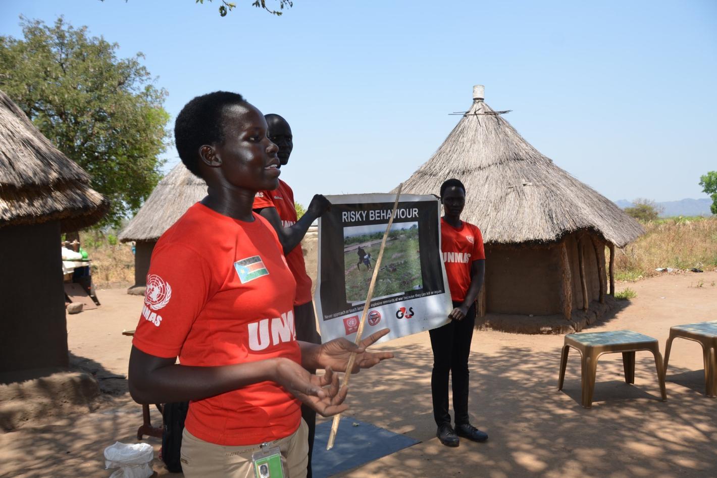 In 2019, funded by the Government of Japan, UNMAS surveyed and cleared large agricultural areas in Eastern Equatoria. A deminer demonstrated the methodology for detection and clearance of a cluster munition during a high…