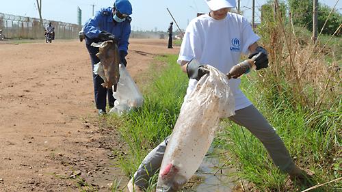 7 May 2011 – Giving the Southern Sudanese capital of Juba a much-needed facelift, the City Council, in coordination with UNMIS, UN agencies and non-governmental organizations, held a day-long cleaning exercise in the city today.