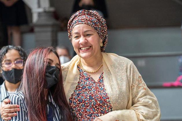 Amina Mohammed visita una escuela de mujeres en San José. “Saber que usted es vicesecretaria de la ONU y que fue una estudiante como nosotras, nos hace creer que también lo lograremos, así como usted lo hizo”, señala una…
