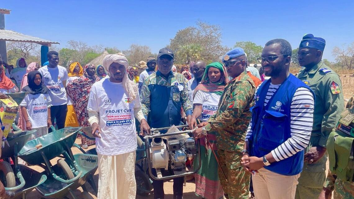 Le 27 mars 2025, la MINUSCA a remis des kits de fin de formation à 100 bénéficiaires, dont la moitié sont des femmes, du Programme de réduction de la violence communautaire (CVR) pour le cycle 2023-2024 à Bashama, une localité située à 20 km de Birao, dans la préfecture de la Vakaga.