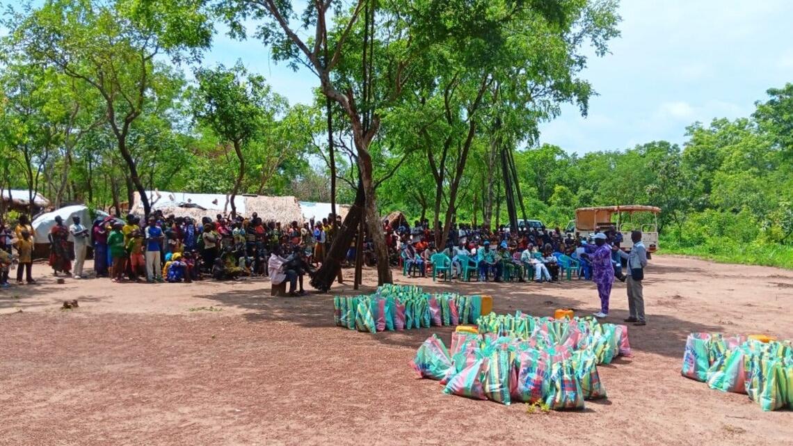Le 20 juin dernier, la MINUSCA a remis des vivres et produits de première nécessité (riz, sucre, sel, savon et huile) à plus de 500 personnes -104 ménages- qui ont fui leur village en raison des conflits liés à la transhumance. Elles se sont installées il y a un an à Kpodikalam à 10 kilomètres au sud de Bossangoa (préfecture de l’Ouham).