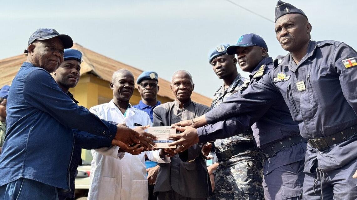 Le 12 février, la Police de la MINUSCA a apporté un appui concret au secteur de la santé en offrant un lot de médicaments à l’hôpital régional de Bouar. Ce don, comprenant des antibiotiques, des antipaludéens, des antalgiques et des sérums, a été salué par les autorités locales, dont le sous-préfet et le maire de Bouar. Une opération de don de sang a été organisée le lendemain à l’hôpital Maigaro à laquelle ont participé une quarantaine de volontaires, incluant des membres des unités de police de la MINUSCA et des FSI.