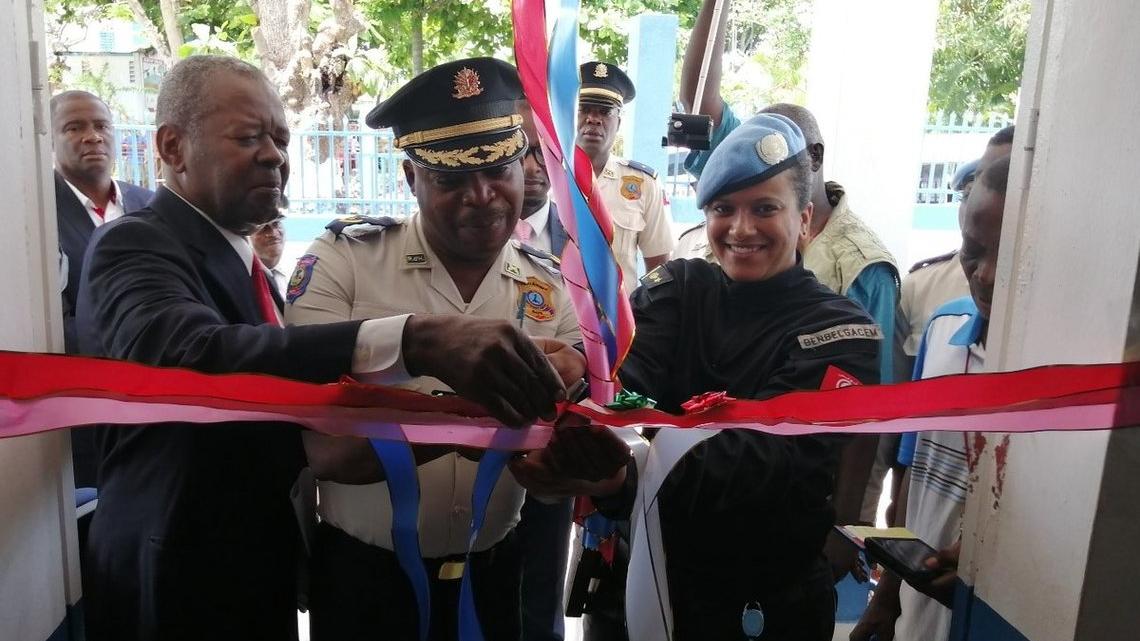 Le commissaire divisionnaire Jean Alex Pierre Louis, Directeur Départemental de la Police Nationale d’Haïti (PNH) pour la Grande-Anse, a inauguré le 20 mai le nouveau commissariat de Dame-Marie, construit avec l´appui de la Mission des Nations Unies pour l´Appui à la Justice en Haïti (MINUJUSTH) et du Programme des Nations Unies pour le Développement (PNUD) dans le cadre du programme conjoint « État de droit ».